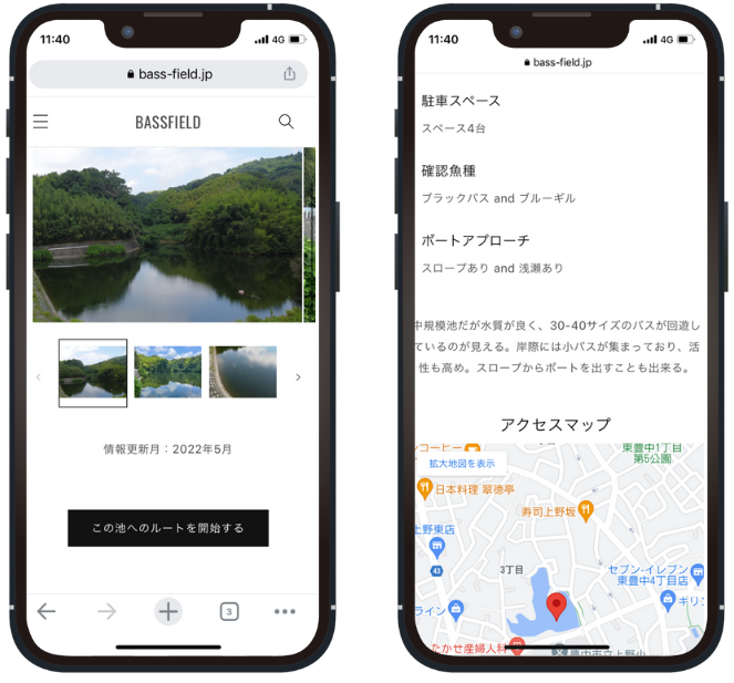 プレミアム会員なら池の詳細に確認魚種や禁止看板の有無なども情報掲載。ルート案内機能で場所もバッチリ
